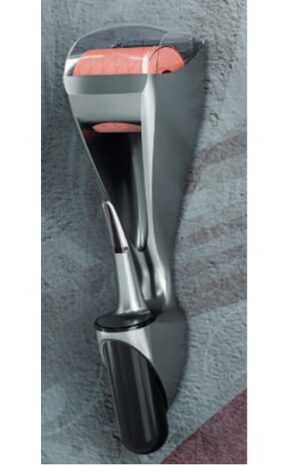 Porta piaçaba em ABS com porta rolos doméstico. Sistema compacto em 2 em 1. Existe em branco, Cinzento a imitar o inox e preto